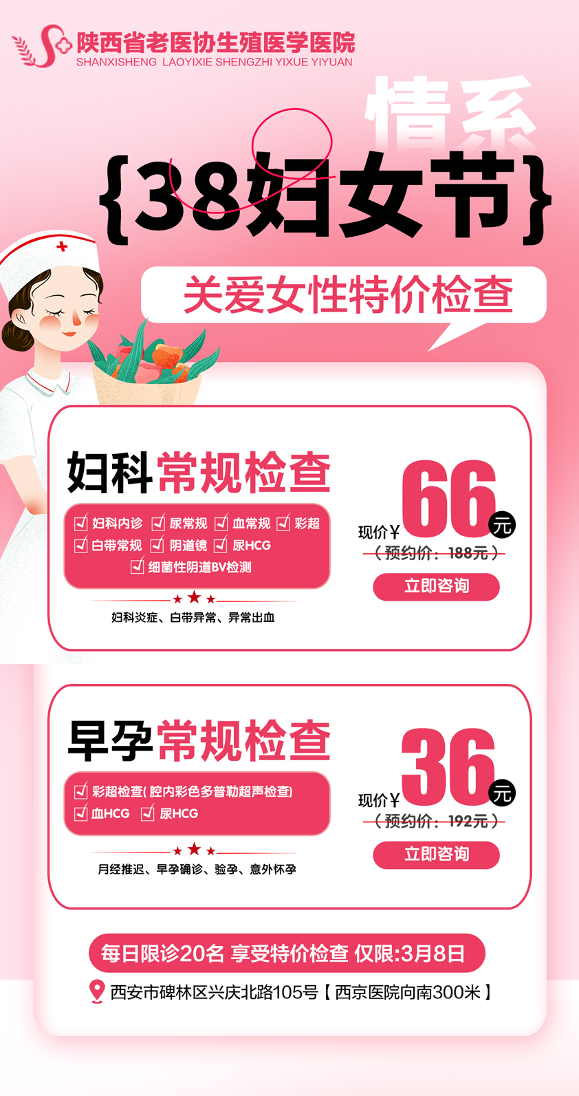 温馨提示:有需要的朋友快来陕西省老医协生殖医学医院进行检查,每日限诊20人,先到先检。