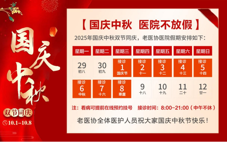 • [荐][新闻中心] 2025年国庆、中秋双节不停诊 老医协生殖医学医院健康守护!
